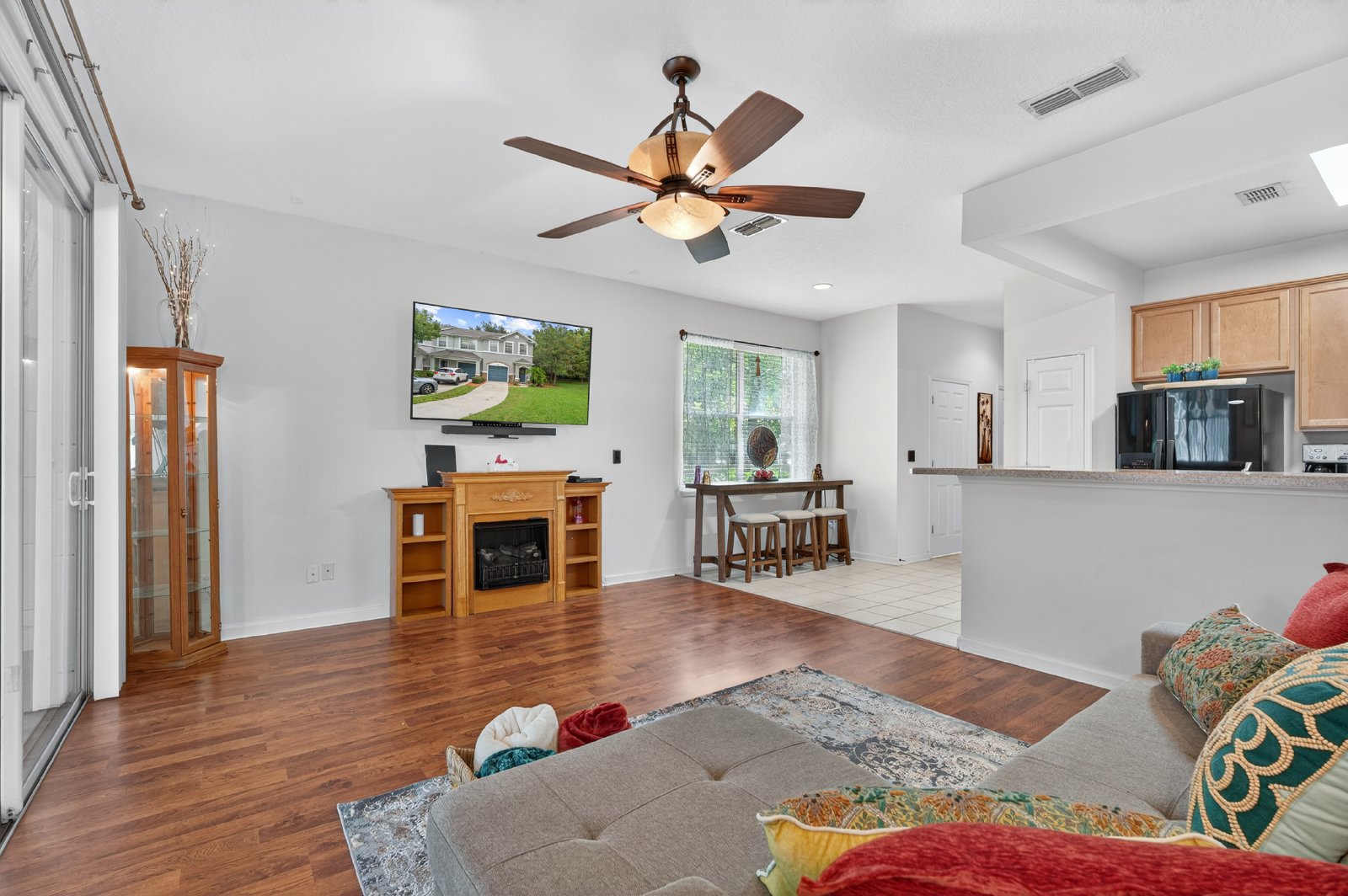 Extremely desirable Bartram Park community! End-unit townhouse 3-bedroom, 2.5-bath townhome offers unparalleled privacy and extra green space, thanks to its prime oversized lot. With no CDD fees and an ultra-low HOA, this gem is not only affordable but also perfectly positioned just a block away from the community pool and fitness center. Spacious and open concept with natural light flooding through triple sliding glass doors creating an inviting atmosphere. The stylish kitchen flows effortlessly into the living room, complemented by a convenient half bath on the main level for guests. Upstairs, the generously sized primary suite features a walk-in closet and a dual-sink vanity with a private water closet. This home boasts brand-new energy-efficient windows and upgraded flooring throughout the first floor, with no carpet to worry about. Abundant storage ensures all your belongings have a place. Own one of Bartram Park's most private and well-located homes.